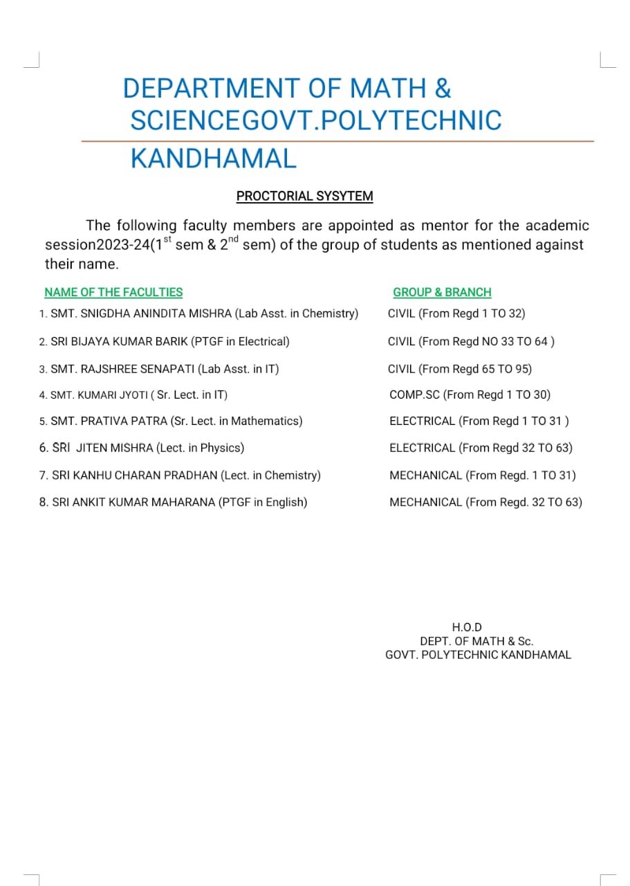 The Department of Mathematics and Science was established in 2013 with an aim to inspire students to explore, understand, and apply mathematical and scientific principles in real-world situations. The department deals with core disciplines such as Mathematics, Physics, Chemistry, and English along with other branch related courses. The Math and Science Department typically serves as the foundation for students pursuing various technical and engineering fields. This department plays a crucial role in equipping students with the fundamental knowledge and skills necessary for their chosen disciplines.